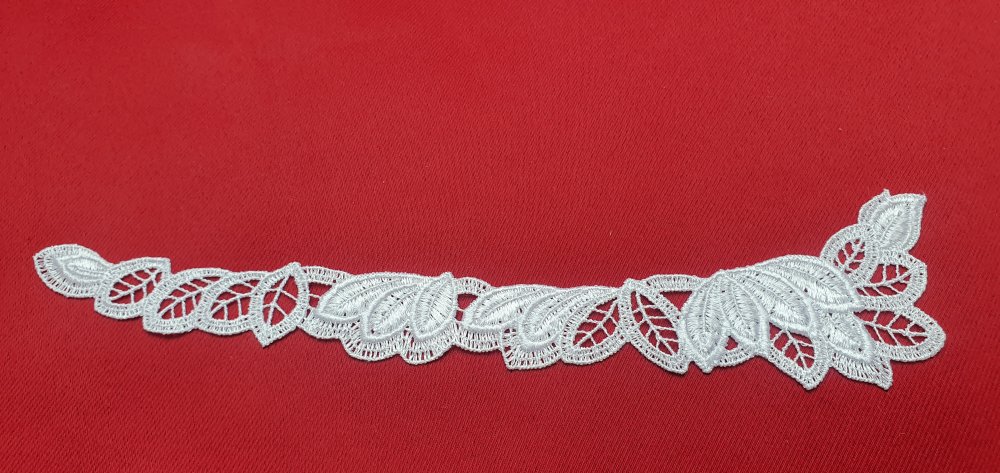 1 applique feuille blanc 21x4.5cm guipure fil de soie