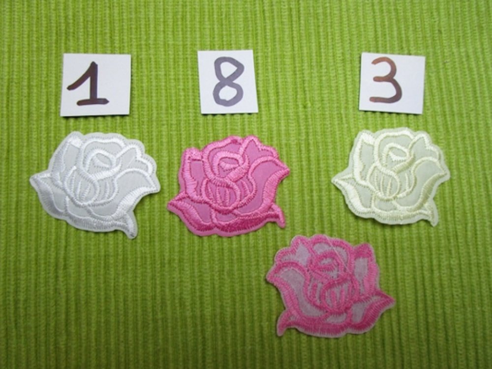 1 Applique fleur beige camel 4.3x4cm tissu brodé à coller ou coudre