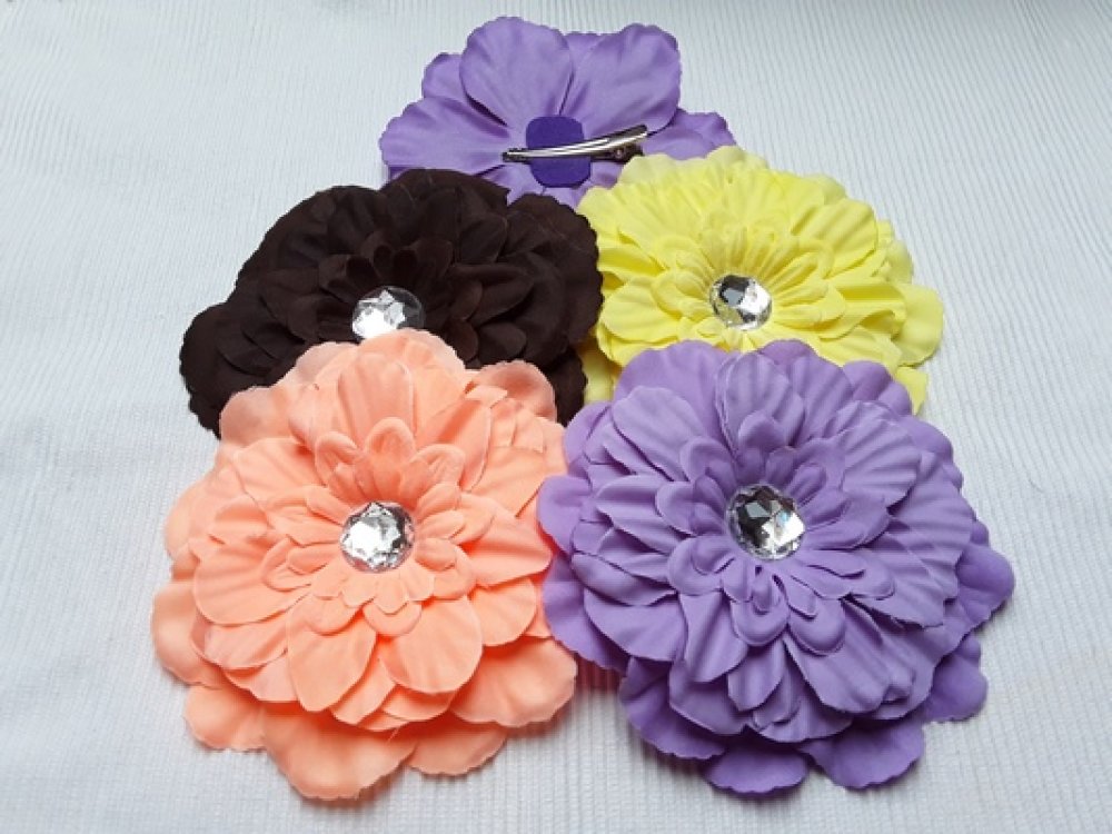 1 Fleur mauve foncé lavande 12cm tissus Strass à Facette à plusieurs paliers au Verso sur feutrine pince
