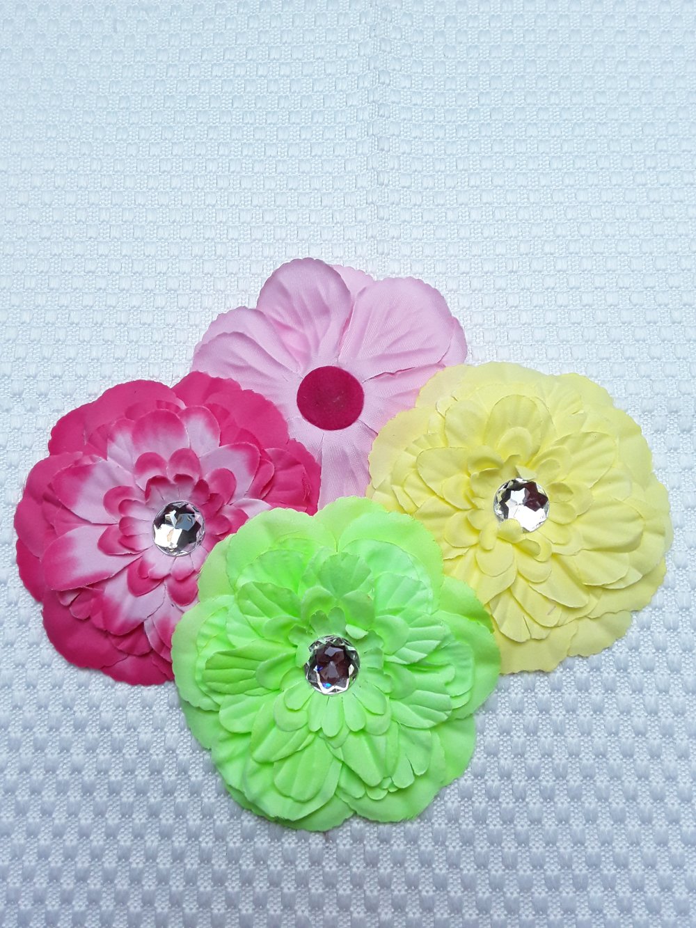 1 Fleur verte 12cm tissus strass à plusieurs paliers verso feutrine. Autres couleurs dans la boutique avec ou sans pince
