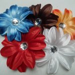 1 Grosse fleur bleue claire de 12.5cm en tissus satiné à 2 paliers avec strass à facette central de 22mm pince recto