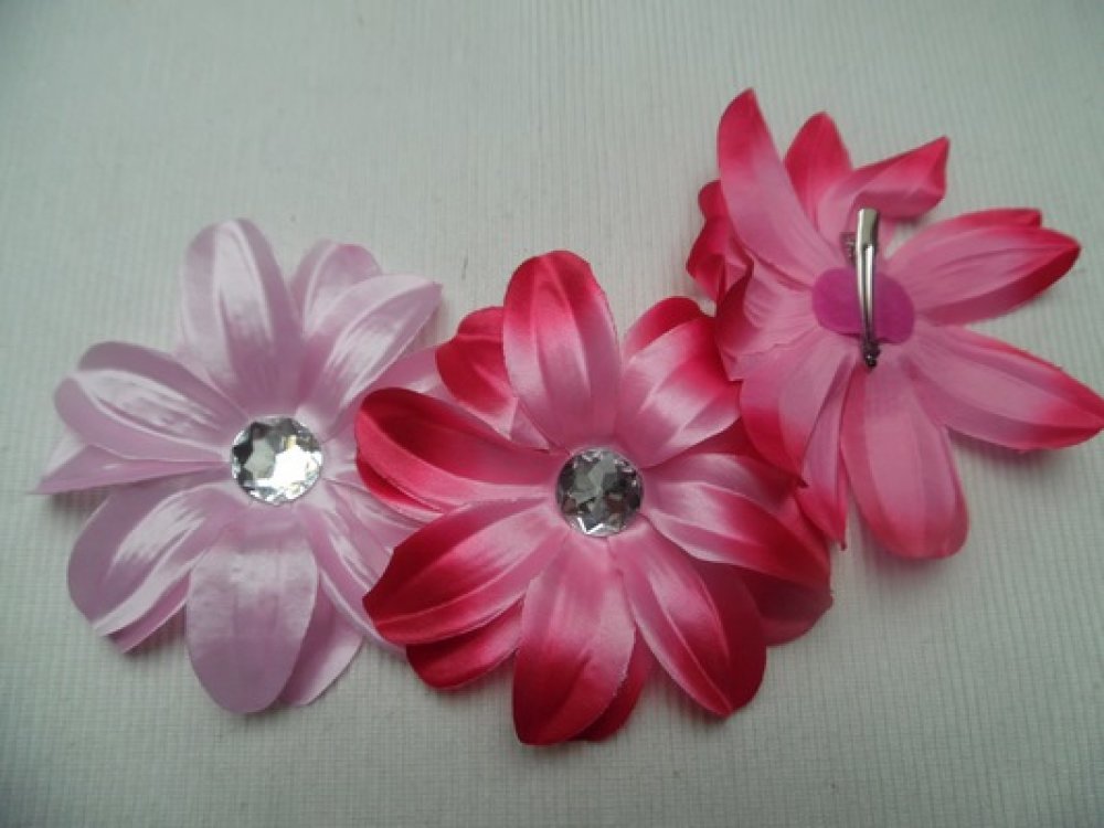 1 Grosse fleur verte de 12.5cm en tissus satiné à 2 paliers avec strass à facette central de 22mm pince recto