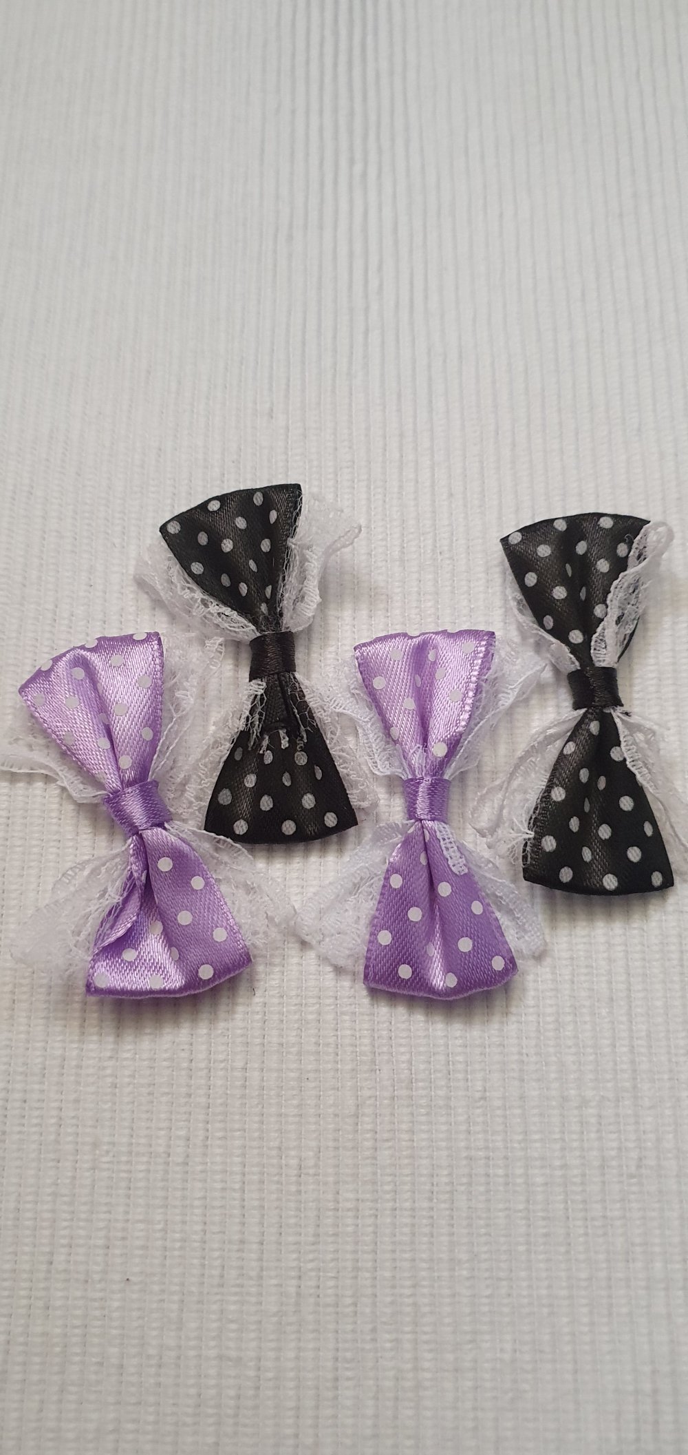 1 petits noeud gris à pois blanc 6.5x4cm satin dentelle. Plusieurs couleurs dans la boutique