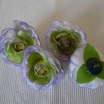 1 pivoine fleur mauve vert tissus polyester organza 7cm à plusieurs niveaux.