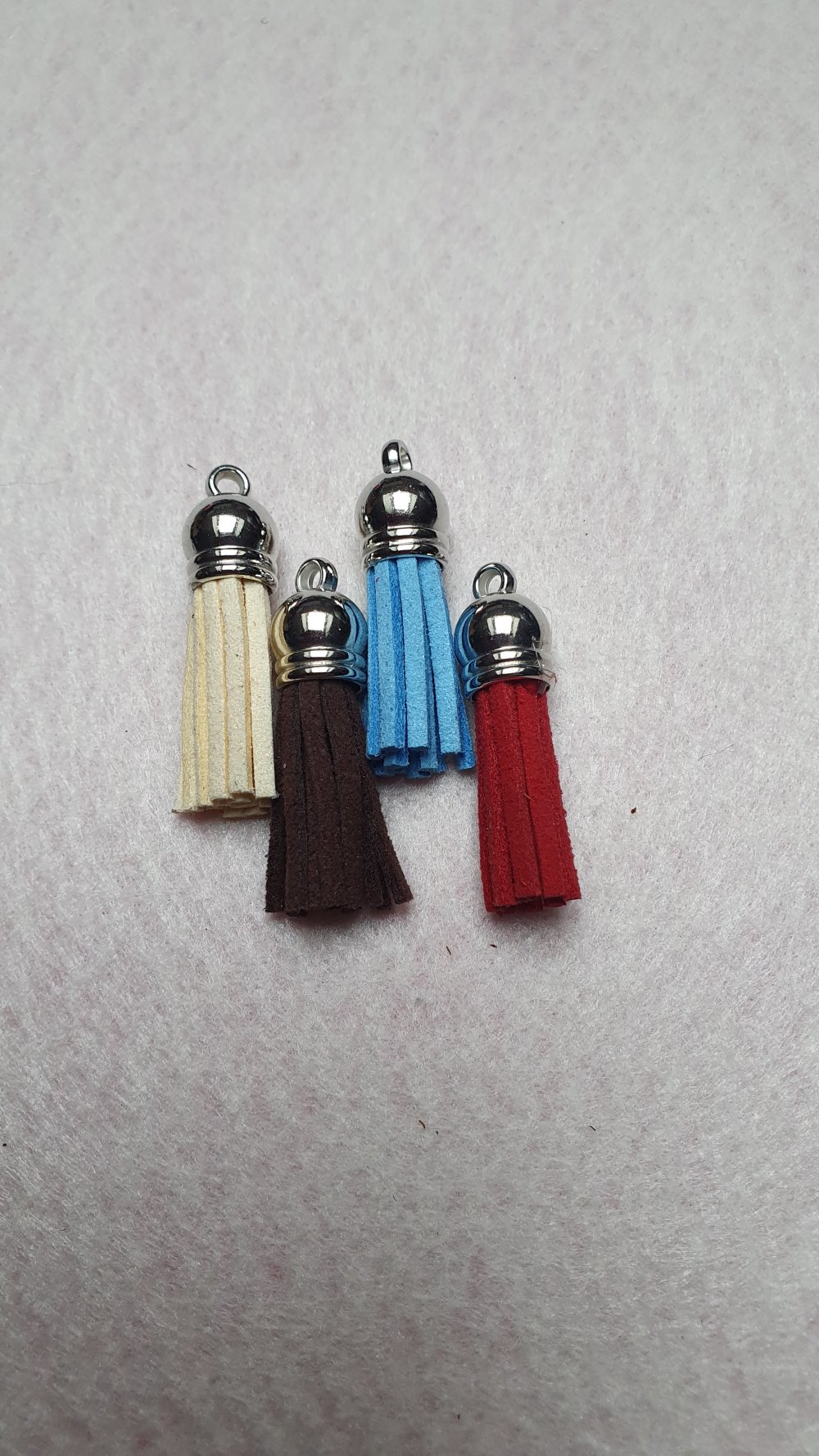 N°4 pompons frange marron 35x10mm suédine. Plusieurs couleurs dans la boutique