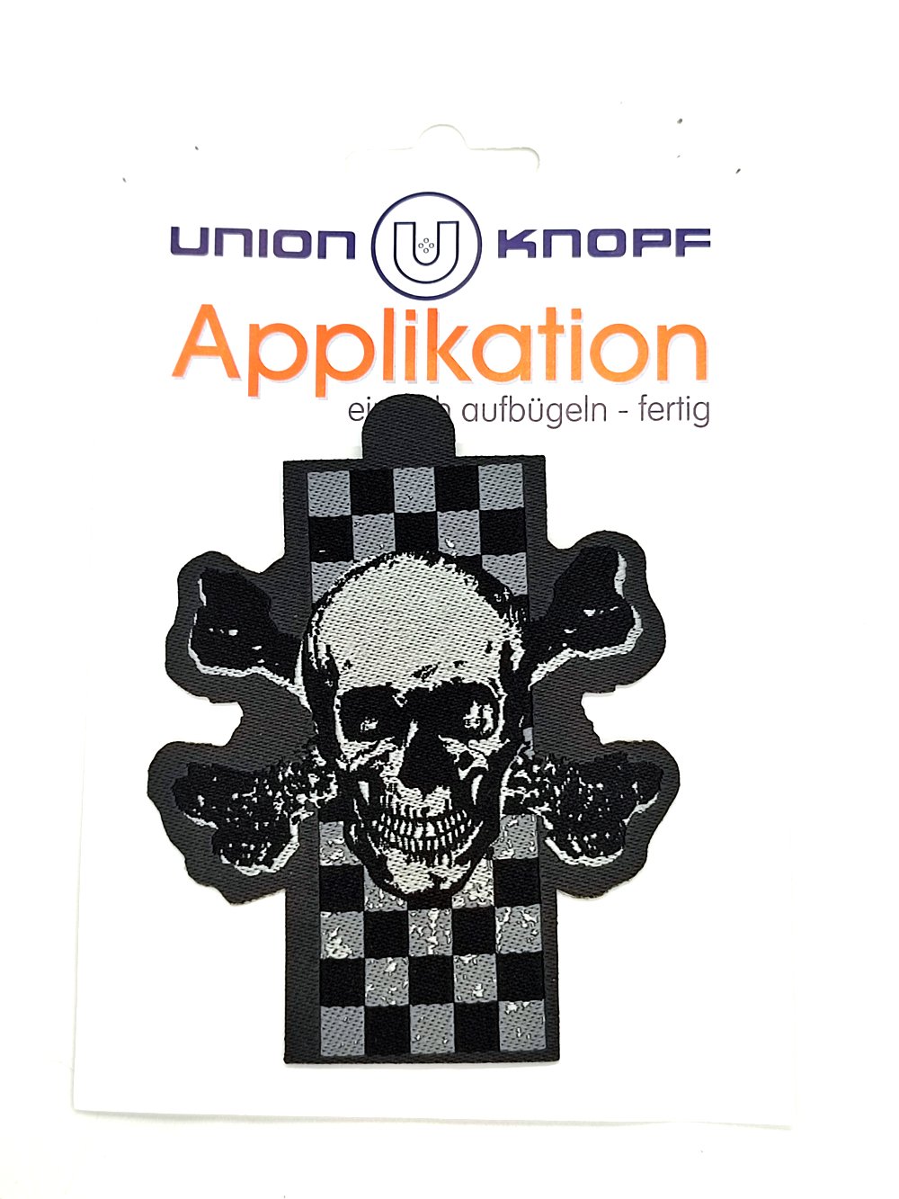 1 Thermocollant / écusson à coudre gris et noir - tete de mort - 10x8cm