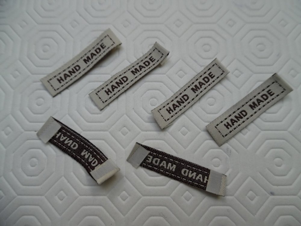 Lot de 10 appliques étiquettes fait main 4.3x1.1cm ivoire marron hand made à coudre brodé