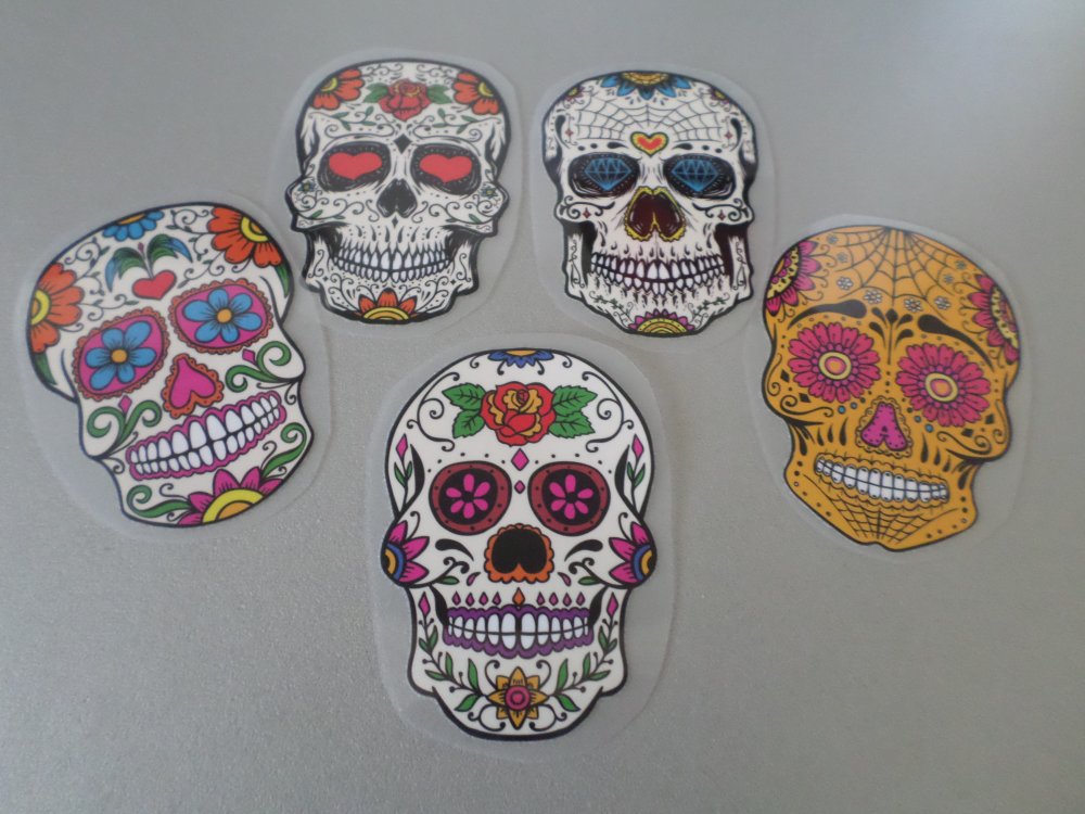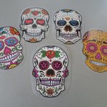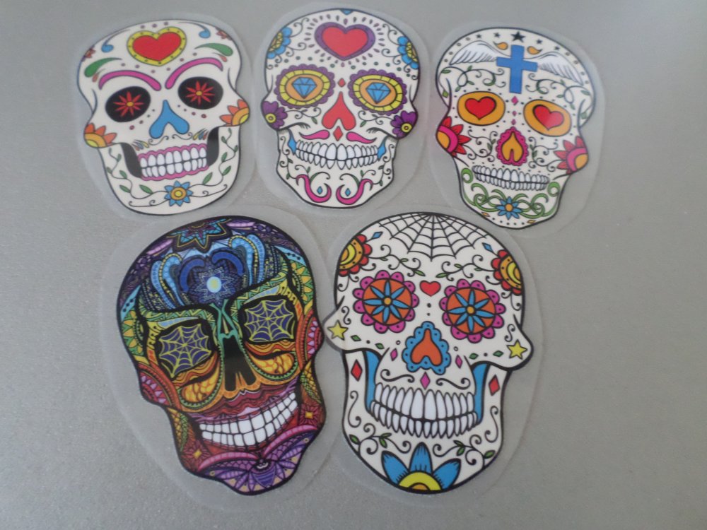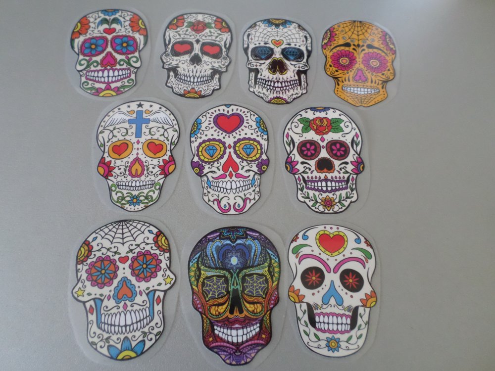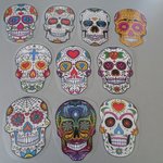 ce très beau lot de 10 mixte transferts écusson-patch thermocollant représentant des têtes de mort de différents motifs et couleurs.