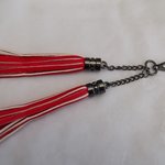 2 pompons à frange rouge sur gros mousqueton gunmétal 15x1.7cm attache pour sac,valise...