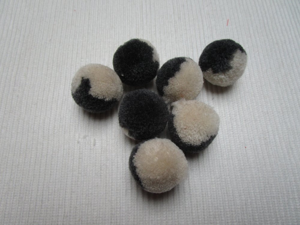 2 pompons blanc gris duvet polyester rond 23mm