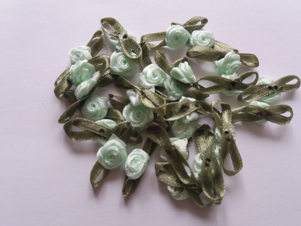 Lot de 25 petites roses en satin vert pâle, pour embellir et finaliser joliment vos décorations et créations