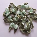 Je vous propose un ensemble de 25 petites roses en satin, couleur pastel vert pâle.