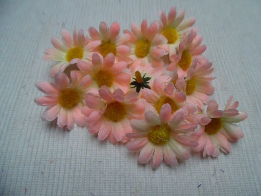 4 fleurs marguerite pâquerette rose pâle jaune 4cm Socle Tige à trou plastique pouvant être ôté, polyester