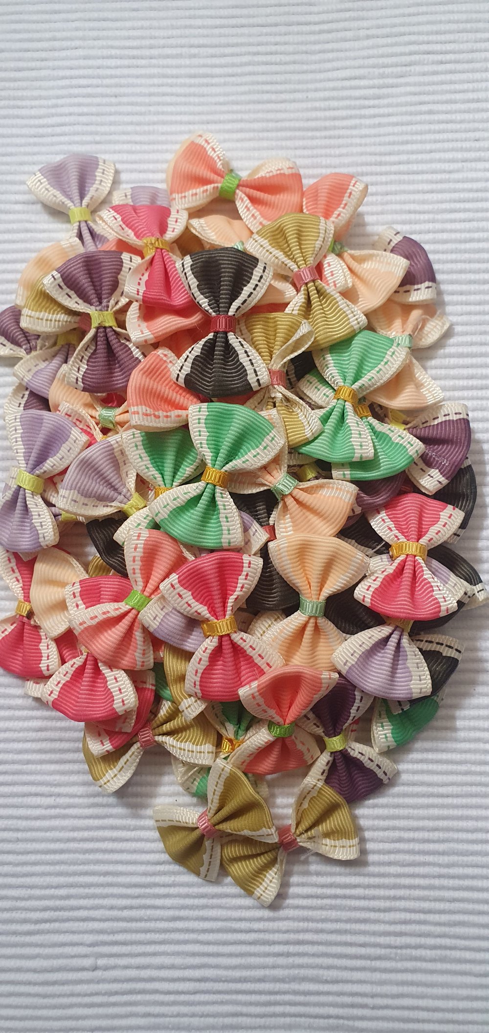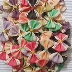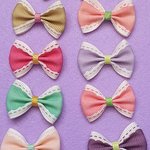 4 petits noeud à liserè mixte 3.5x2.5cm galon satiné, violet,vert, saumon, moutarde. Plusieurs couleurs dans la boutique