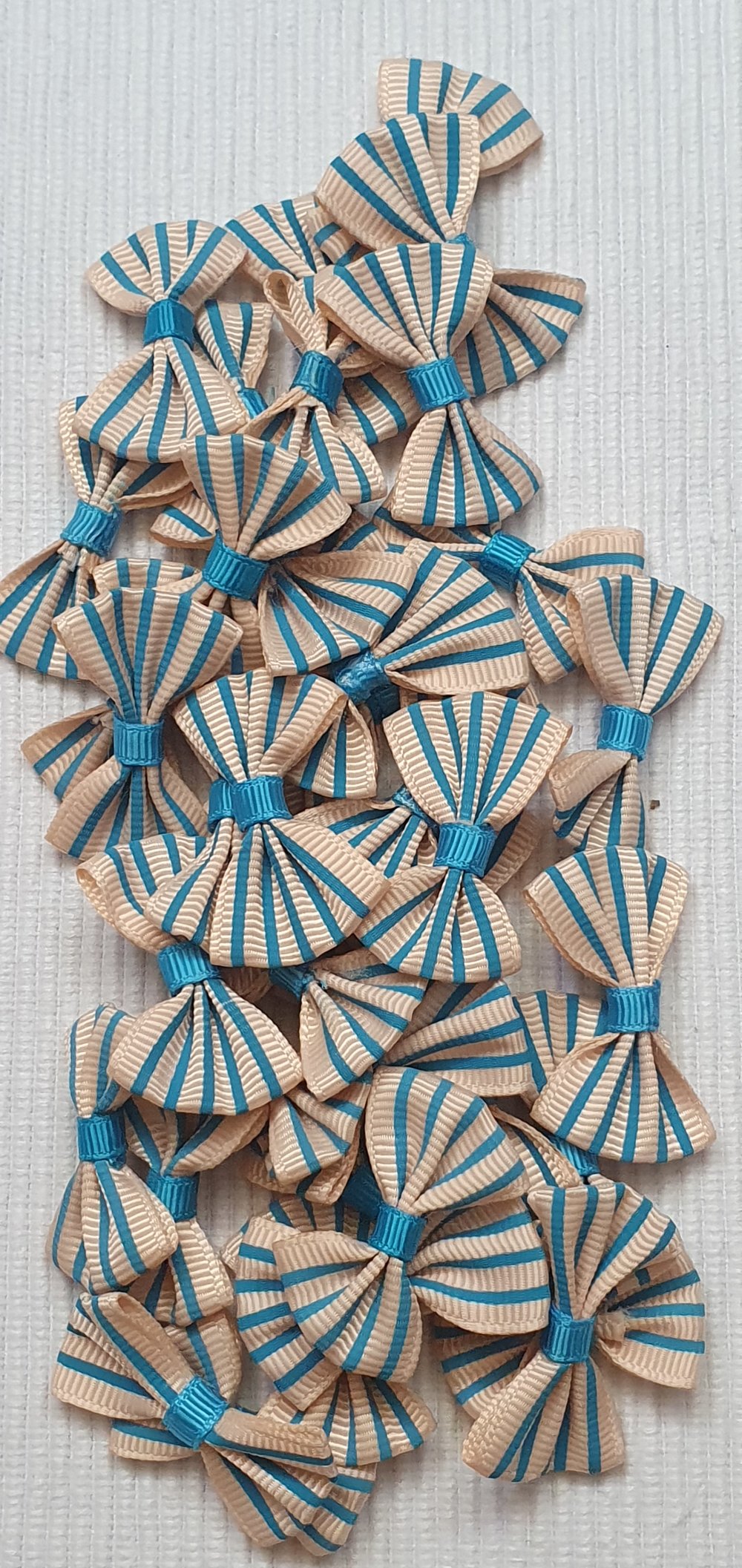 4 petits noeud beige à rayure orange 3.5x2.5cm galon satiné. Plusieurs couleurs dans la boutique