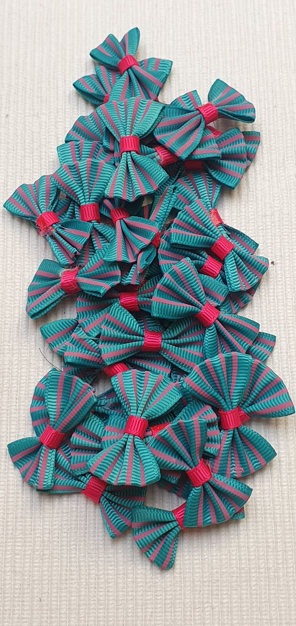 4 petits noeud vieux rose à rayure marron 3.5x2.5cm galon satiné. Plusieurs couleurs dans la boutique