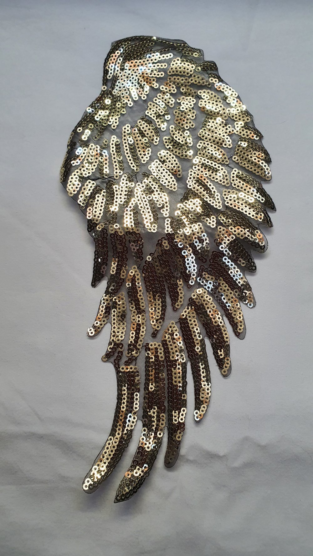 Applique aile d'ange B 26.5x12.5cm dorée sequin