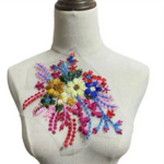 Appliqué à coller ou à coudre représentant un joli bouquet de fleurs printanier brodé de fils de coton de multitude de couleurs ; Le patch tout en fils de coton sur un filet de mousseline est à positionner dans le sens que vous voulez, il mesure 24cm x 17cm