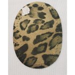 Coudières en simili daim petit modèle (10,5 x 7,5 cm), beige avec imprimé léopard vert/gris.