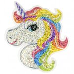 Ecusson thermocollant à sequins licorne arc en ciel 6 cm x 5,5 cm