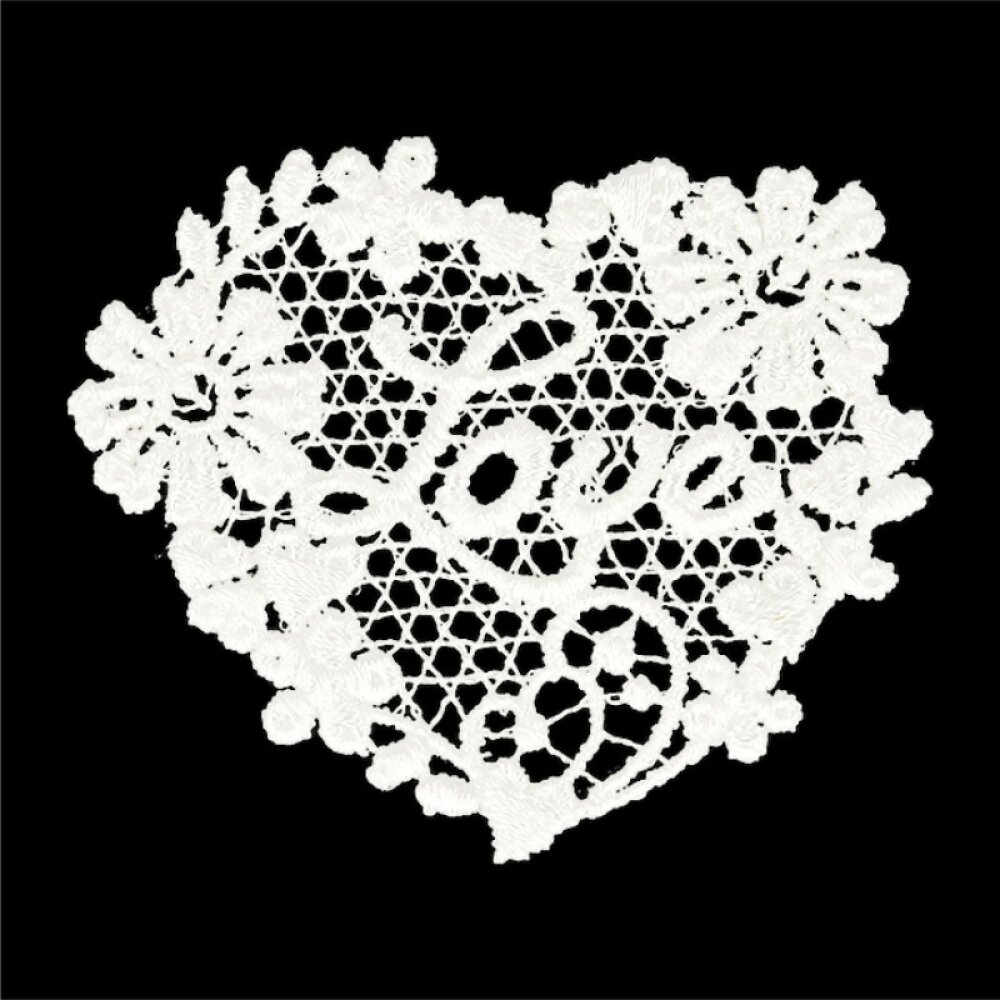 Ecusson thermocollant dentelle élégant coeur love 4,5cm x 3,5cm