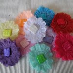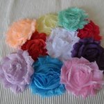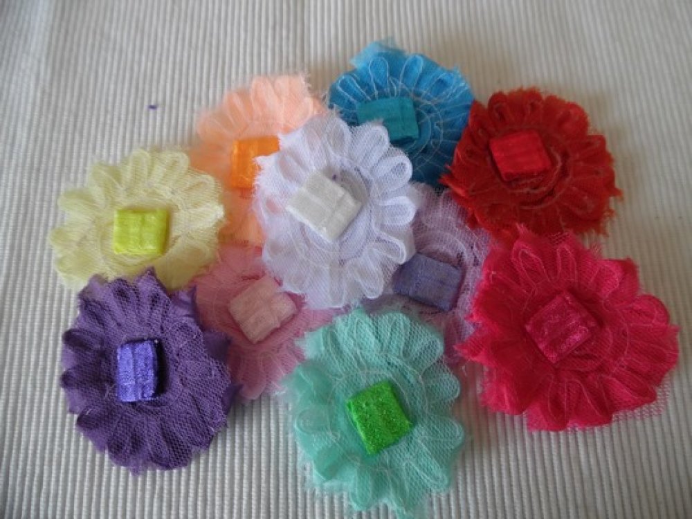Grosse fleur rouge 7cm Froufrou à multiple niveaux en tissu tulle, passant élastique pour bandeau ou pince de 1.5cm au verso