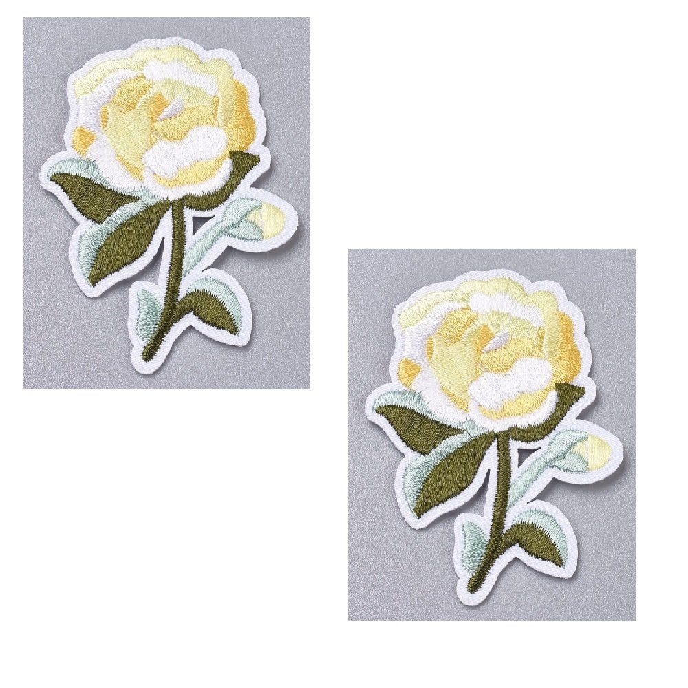 LOT 2 APPLIQUES TISSUS THERMOCOLLANT : fleur jaune/blanche 6*5cm (01)