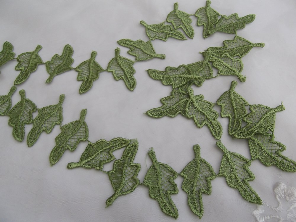Lot de 10 appliques feuille 5x2.5cm vert dentelle guipure