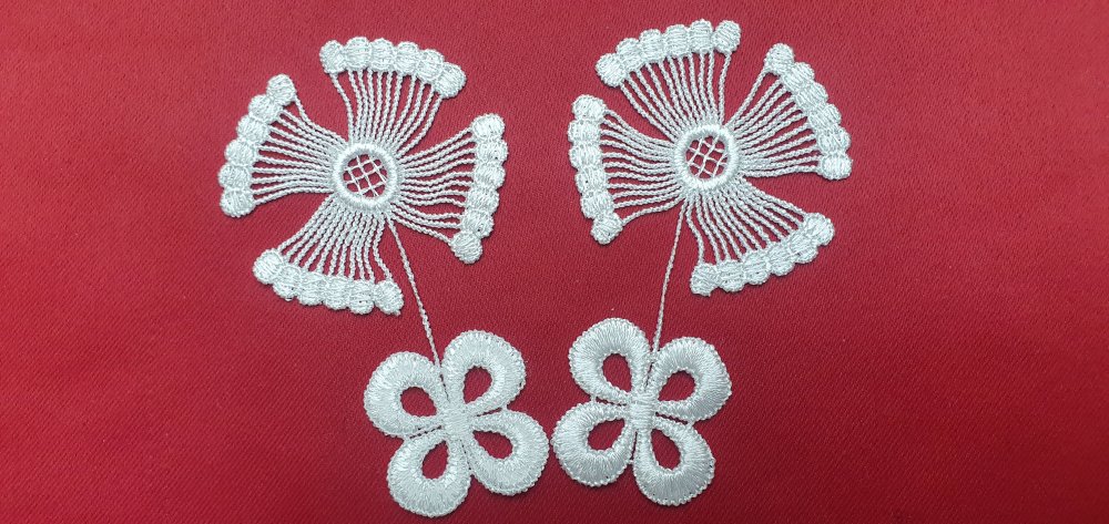 Lot de 2 appliques fleurs blanche 10x6cm guipure AB021