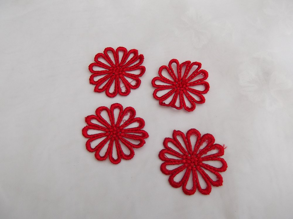 Lot de 3 appliques fleurs rouges 5cm guipure