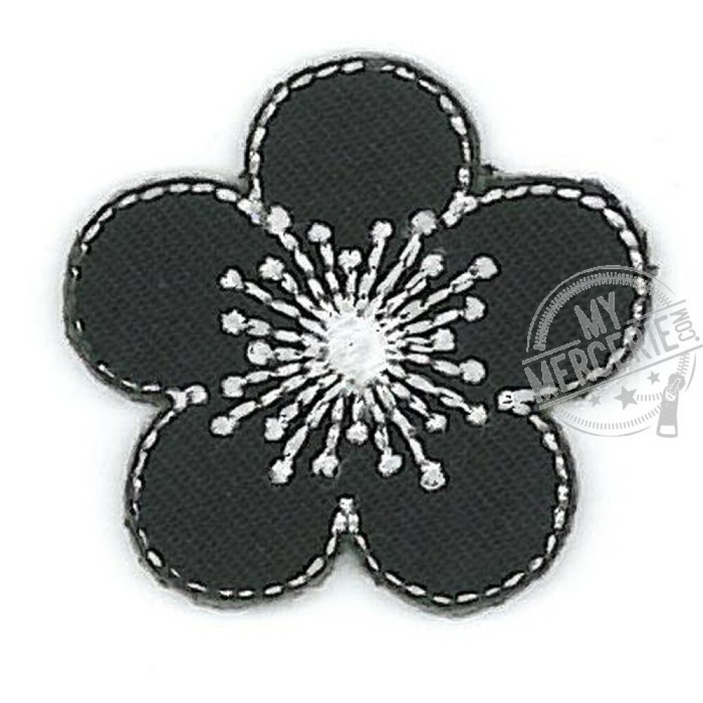 Lot de 3 écussons thermocollants fleur noir 3cmx3cm
