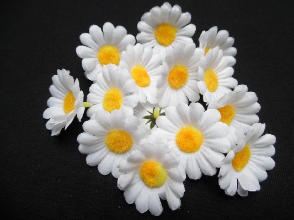 Lot de 4 fleurs marguerite pâquerette blanche jaune 4.5cm