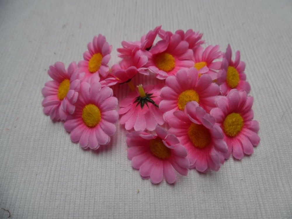 Lot de 4 fleurs marguerite pâquerette rose vif jaune 4.5cm Socle Tige à trou plastique pouvant être ôté, polyester
