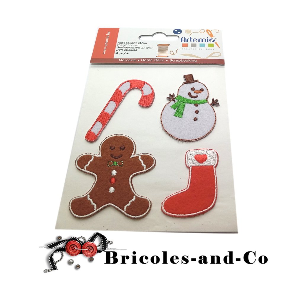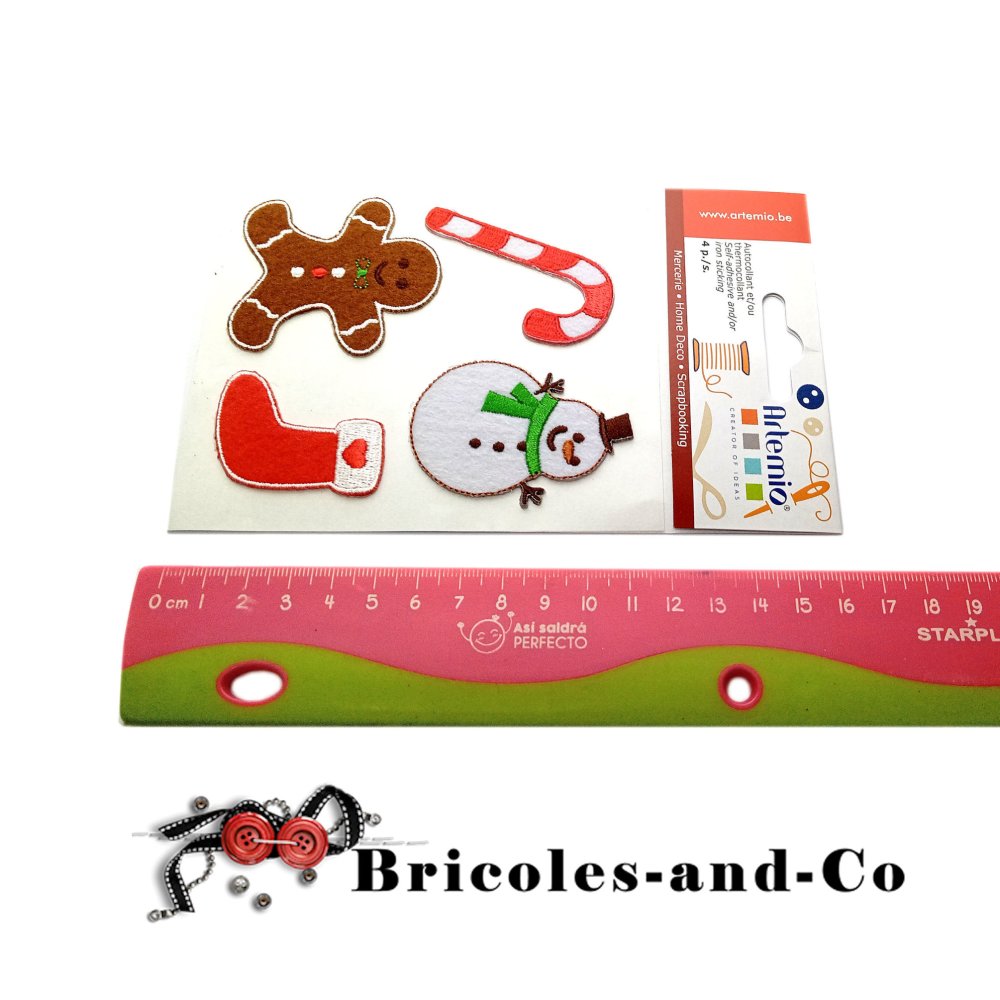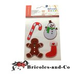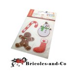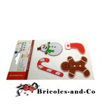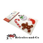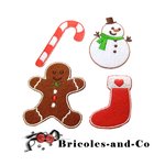Descriptif : canne, bonhomme de neige, bonhomme pain d’épices et chaussette.