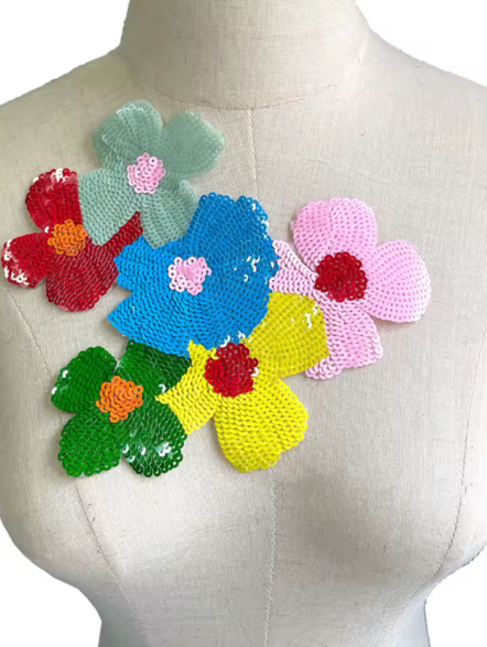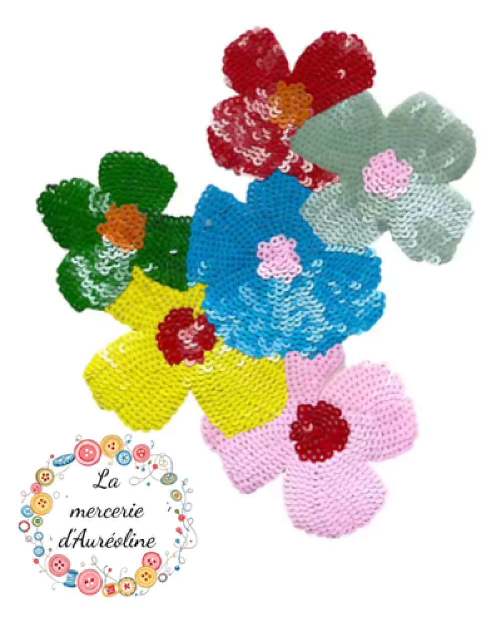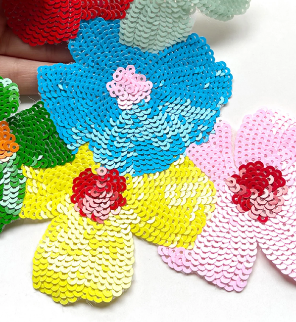 Patch à coudre au motif de fleurs en sequins de différentes couleurs