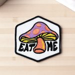 Ce patch brodé "EAT ME" met en avant un champignon aux couleurs vibrantes, parfait pour les adeptes du style rétro et psychédélique.