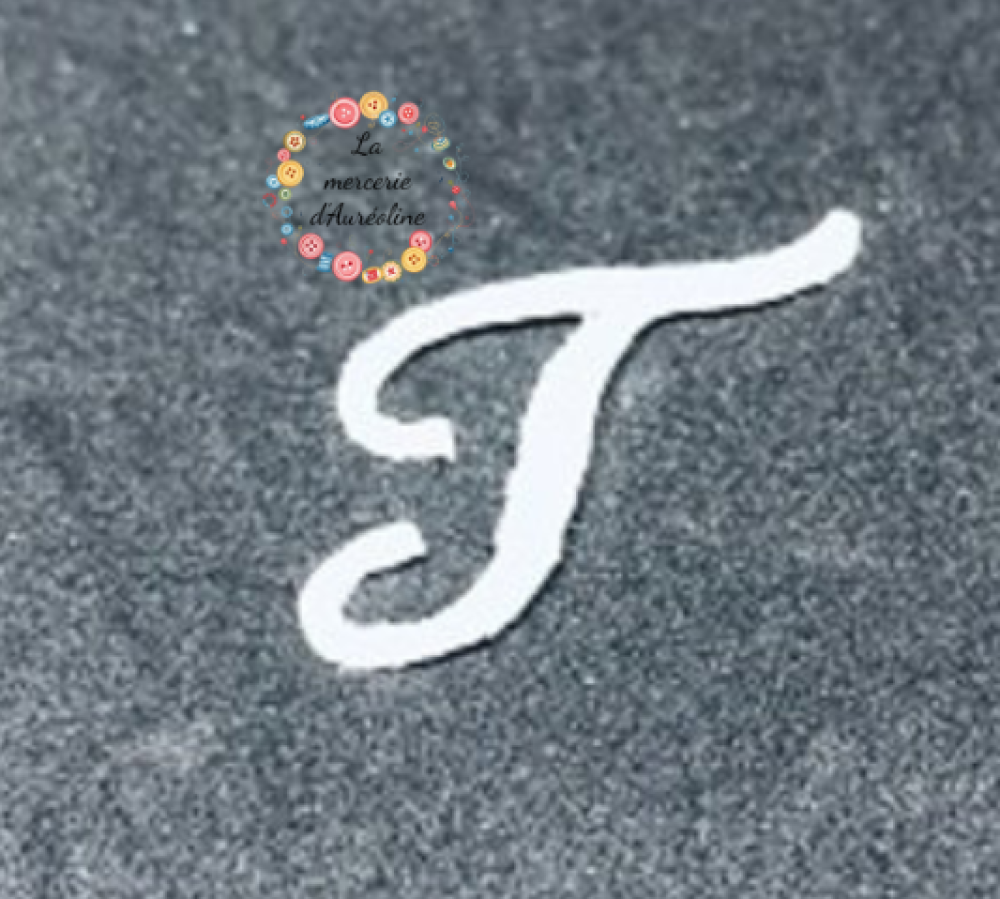 Patch brodé lettre "T" de calligraphie anglaise de couleur blanche