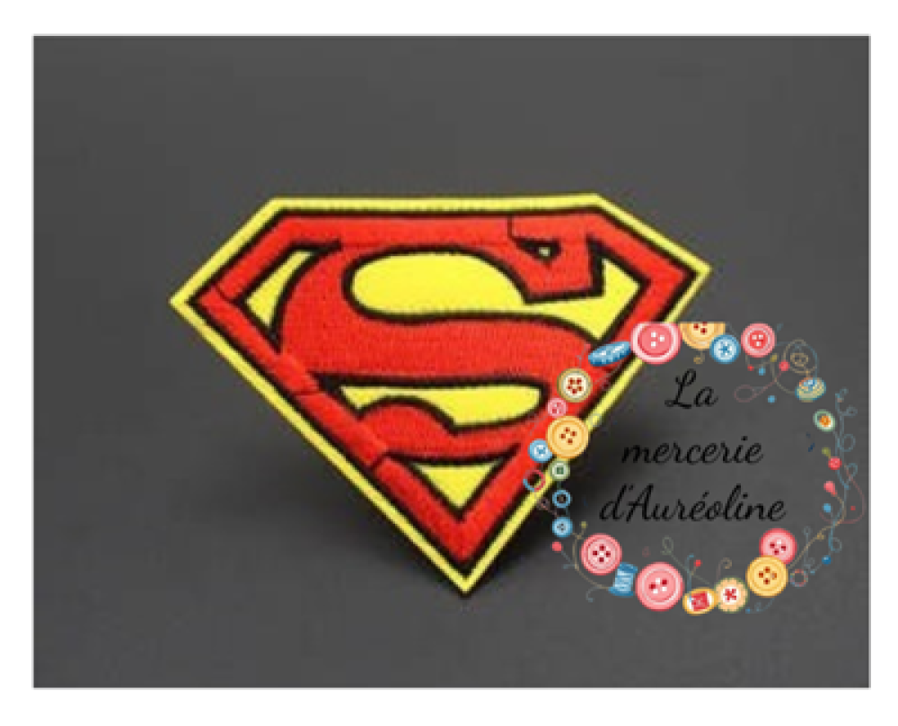 Patch à repasser, à coudre ou à coller représentant le logo de SUPERMAN brodé en fils de coton et polyester de couleurs rouge, noir et jaune ; Les dimensions sont 8,5cm x 6,5cm