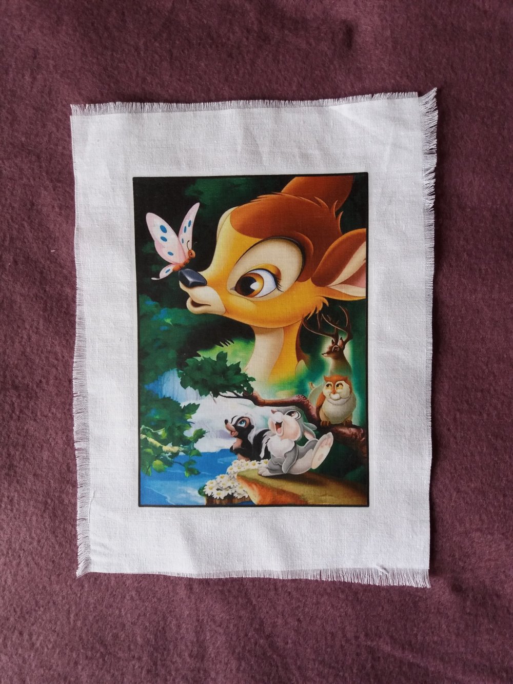 Je vous propose ce transfert d'une image représentant des petits personnages de dessin animé effectué sur un tissu en coton blanc. Aspect plastifié.