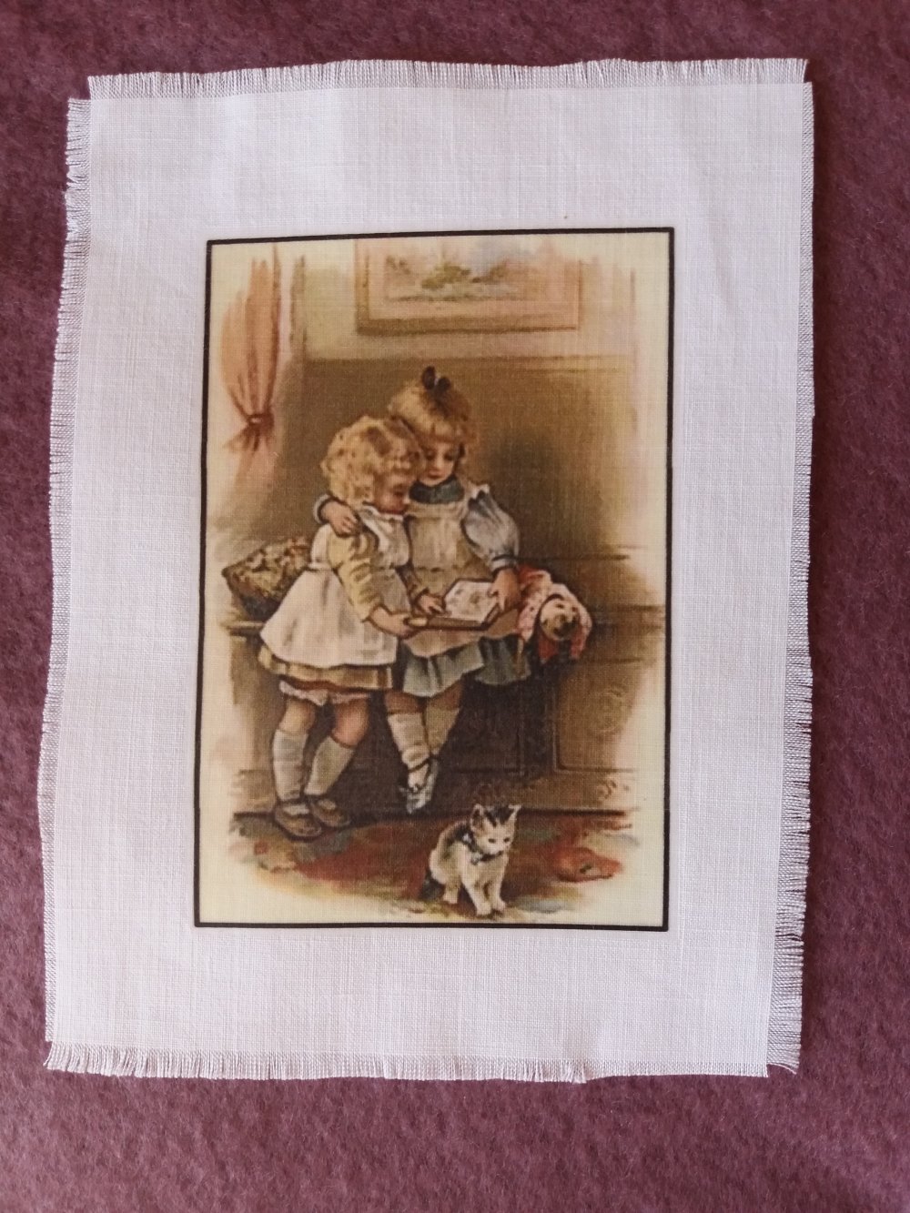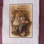 Illustration ancienne enfants rétro transférée sur tissu coton blanc
