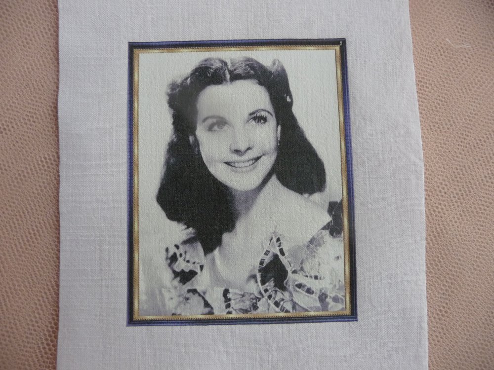 Joli transfert sur tissu coton blanc, de la magnifique Scarlett O'Hara, héroïne du film culte "Autant en emporte le vent", interprétée par l'inoubliable Vivien Leigh.