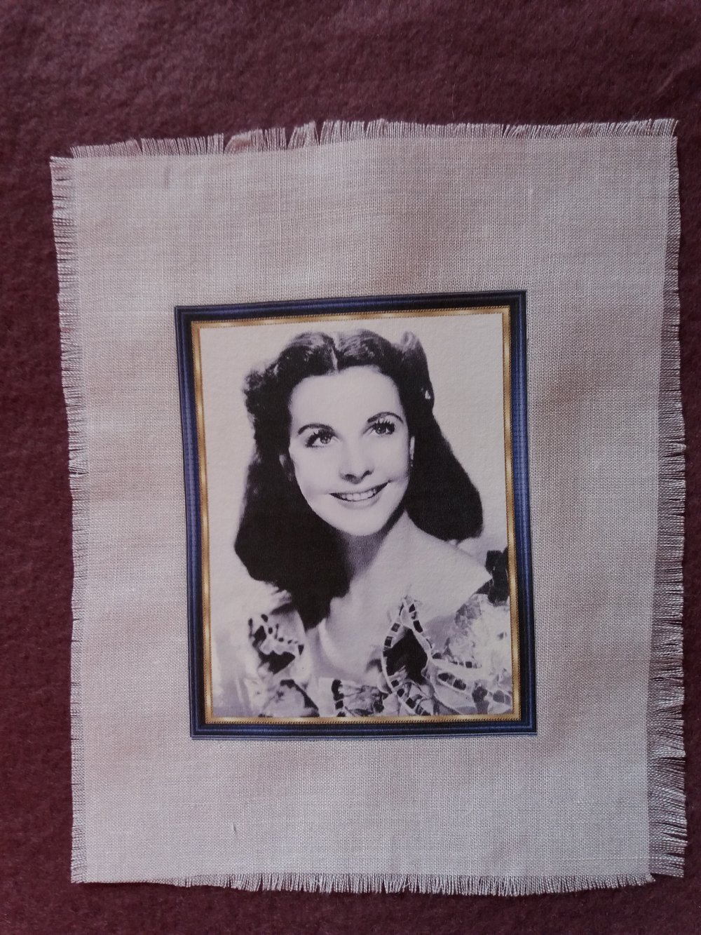 Joli transfert sur tissu coton fin écru, de la magnifique Scarlett O'Hara, héroïne du film culte "Autant en emporte le vent", interprétée par l'inoubliable Vivien Leigh.