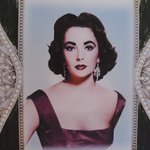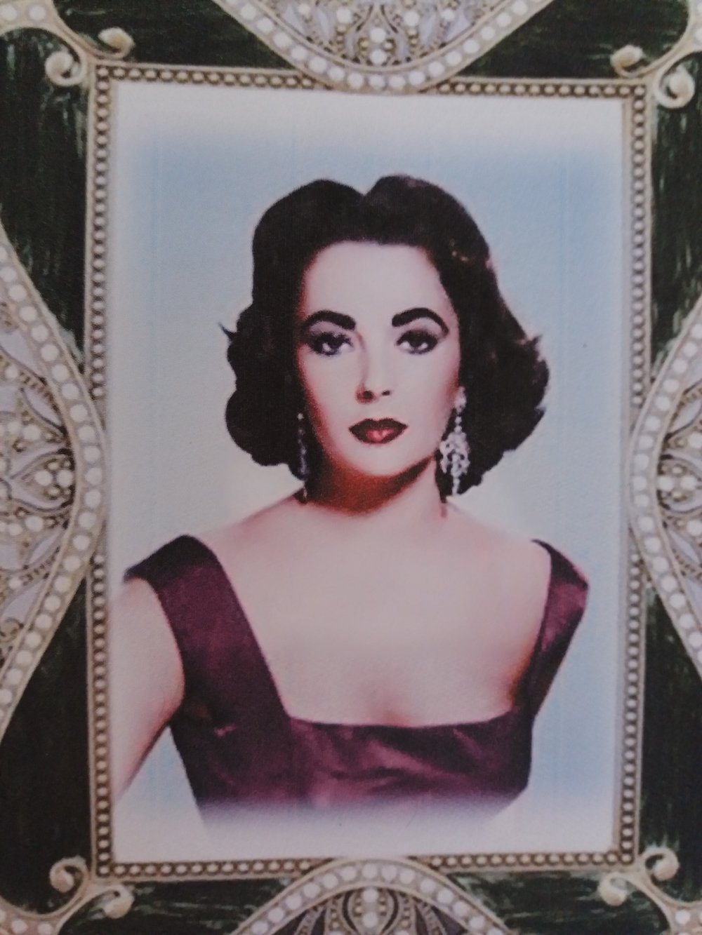 Portrait d'Elisabeth Taylor dans un cadre luxueux, transféré sur un tissu fin coton couleur blanche