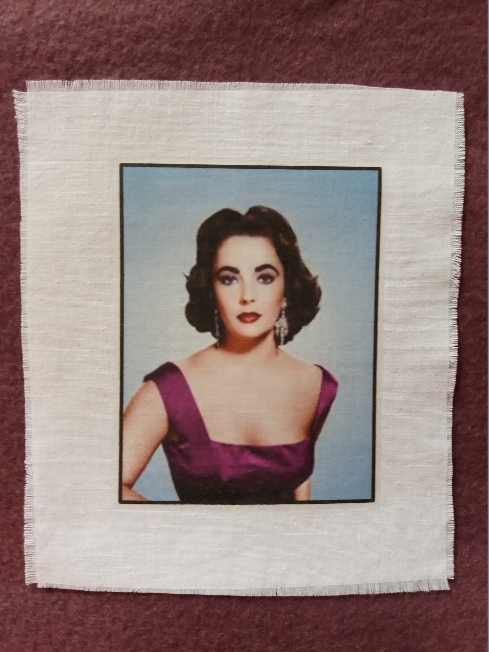 Portrait de Liz Taylor transféré sur tissu coton blanc