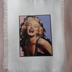 Jolie illustration de Marilyn Monroe transférée sur un tissu en coton légèrement épais, couleur écrue.