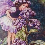 Joli transfert d'une adorable petite fée lilas, effectué sur un tissu en coton blanc. Aspect légèrement plastifié (le transfert laisse une légère pellicule sur l'image).
