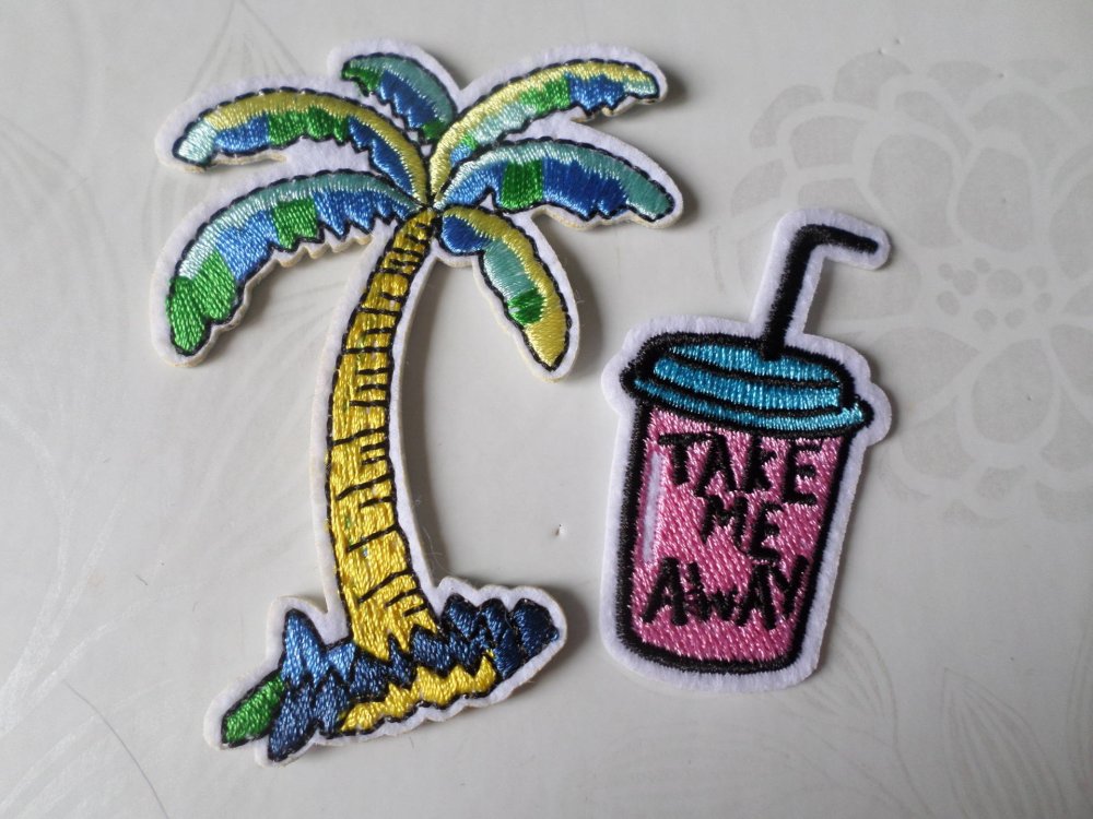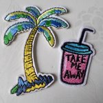 x 2 appliqués écusson/patch thermocollant brodé palmier/verre