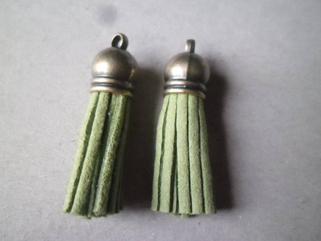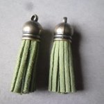 x 2 pendentifs pompon suédine kaki gland plastique bronze