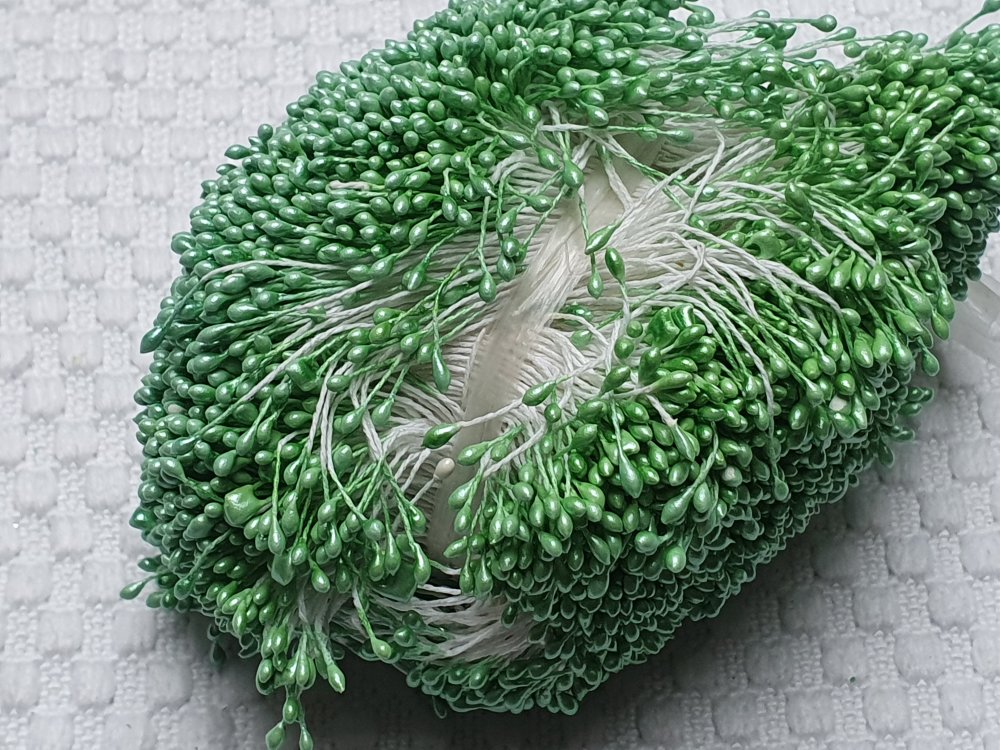 Lot de 12 Tiges étamines pistils verts nacrés 58mm pour mariage, baptême,déco, embellissement, bouquet de fleurs
