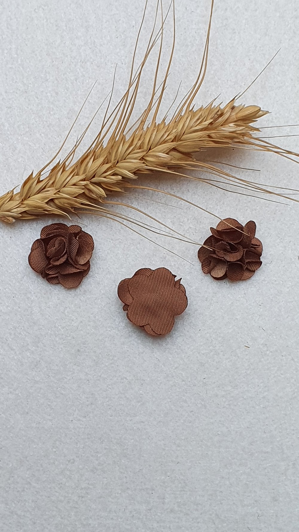 2 fleurs léopard marron crème 20mm approx tissu satin. Diverses couleurs dans la boutique